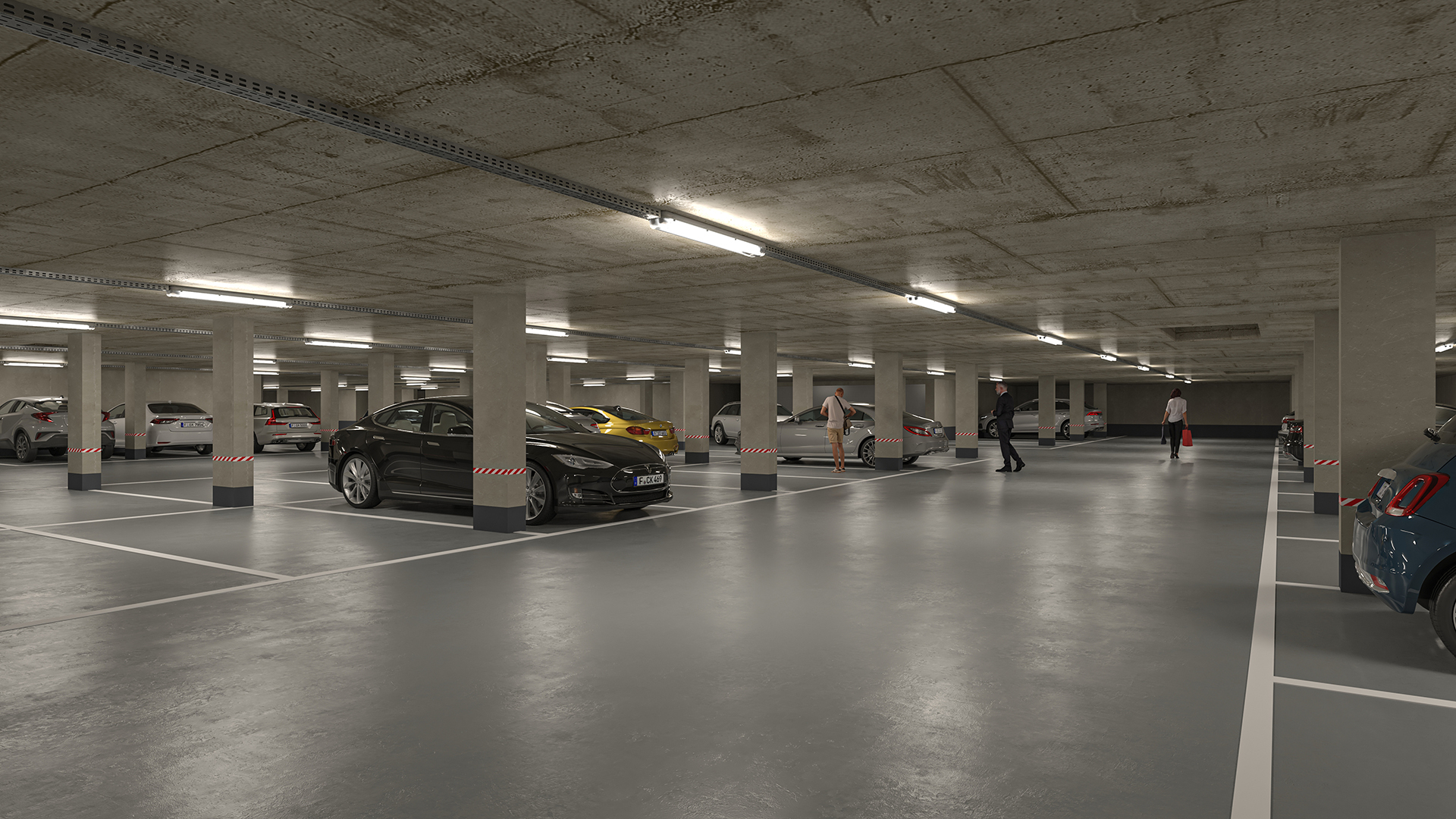 - 1 oberirdischer Stellplatz, 13 oberirdische Besucher-Parkplätze