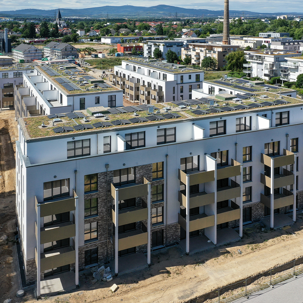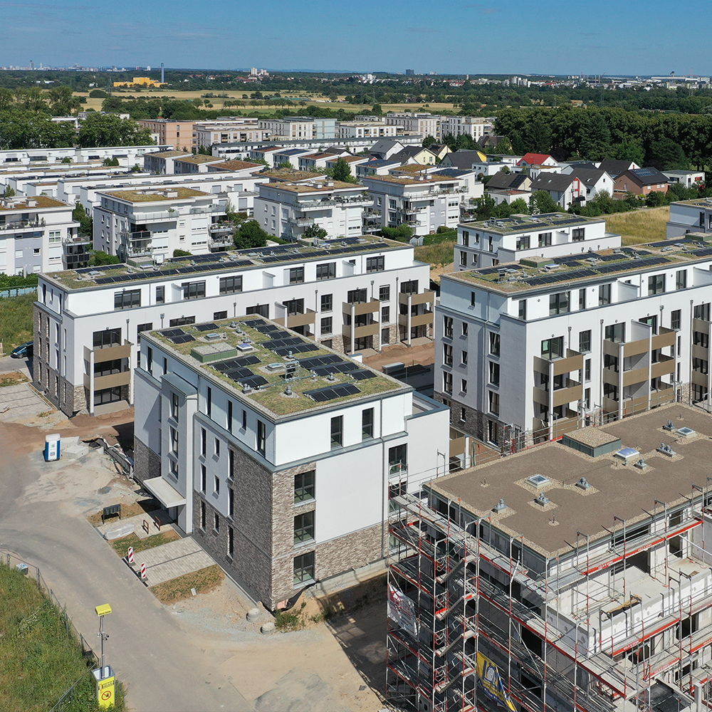 Im Neubaugebiet „Vordere Voltastraße“ im Süden von Hattersheim (Main-Taunus-Kreis) entstehen auf dem Baufeld 3 + 4 fünf Mehrfamilienwohnhäuser (insgesamt acht Gebäudeteile) im KfW-40-Standard mit insgesamt 107 Wohneinheiten und einer gemeinsamen Tiefgarage mit 101 PKW-Stellplätzen. Entlang der Planstraße E werden weitere 6 oberirdische PKW-Stellplätze in der Außenanlage hergestellt und 12 PKW-Stellplätze werden als Besucher-Stellplätze ausgewiesen.