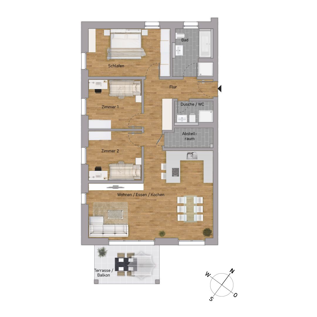 - Wohnflächen von ca. 63 m² bis ca. 126 m²